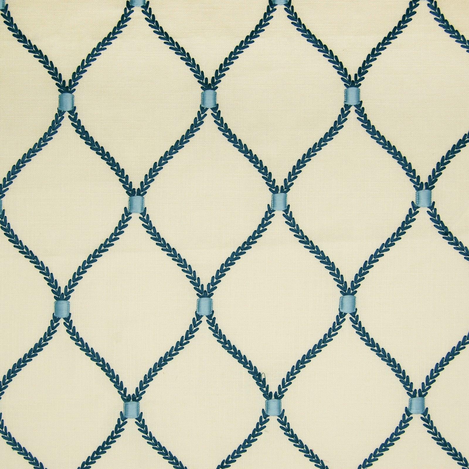 This embroidered lattice fabric is both clean-cut and intricately detailed. Featuring polyester/cotton construction with 100% cotton embroidery, it's a luxurious, contemporary choice for either a main or supporting pattern in your design--great for draperies, cornice boards, bedding, and pillows.