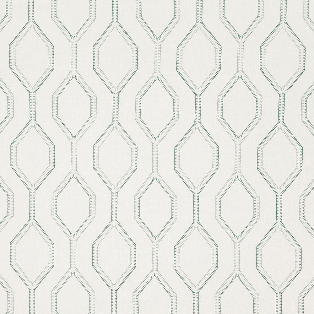 Going My Way Mint Ore adds beauty and texture to any home decor with its geometric ogee embroidered in two different colored threads. Enjoy the eye-catching effect of this fabric on draperies, pillows and more.